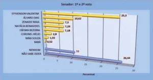 A pesquisa da Consult mostrou, ainda, que a preferência do eleitor, na soma do primeiro e segundo votos, o líder Styvenson Valentim tem 25,3% e Álvaro Dias, 10,62%.